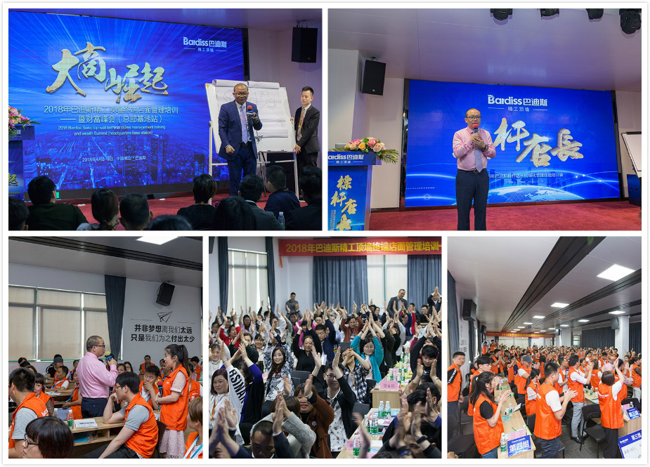 為了提高終端門店在當地市場的核心競爭力,助其在激烈的爭奪戰中有所收獲,4-5月,巴迪斯商學院主辦了兩場主題分別為 “大商崛起”和“標桿店長”的大型培訓會,并邀請了國內著名實戰派管理專家、職業培訓師黃會超老師前來培訓,對經銷商、店長進行了針對性、系統化的運營運作指導,有效地提升終端門店的運營能力。